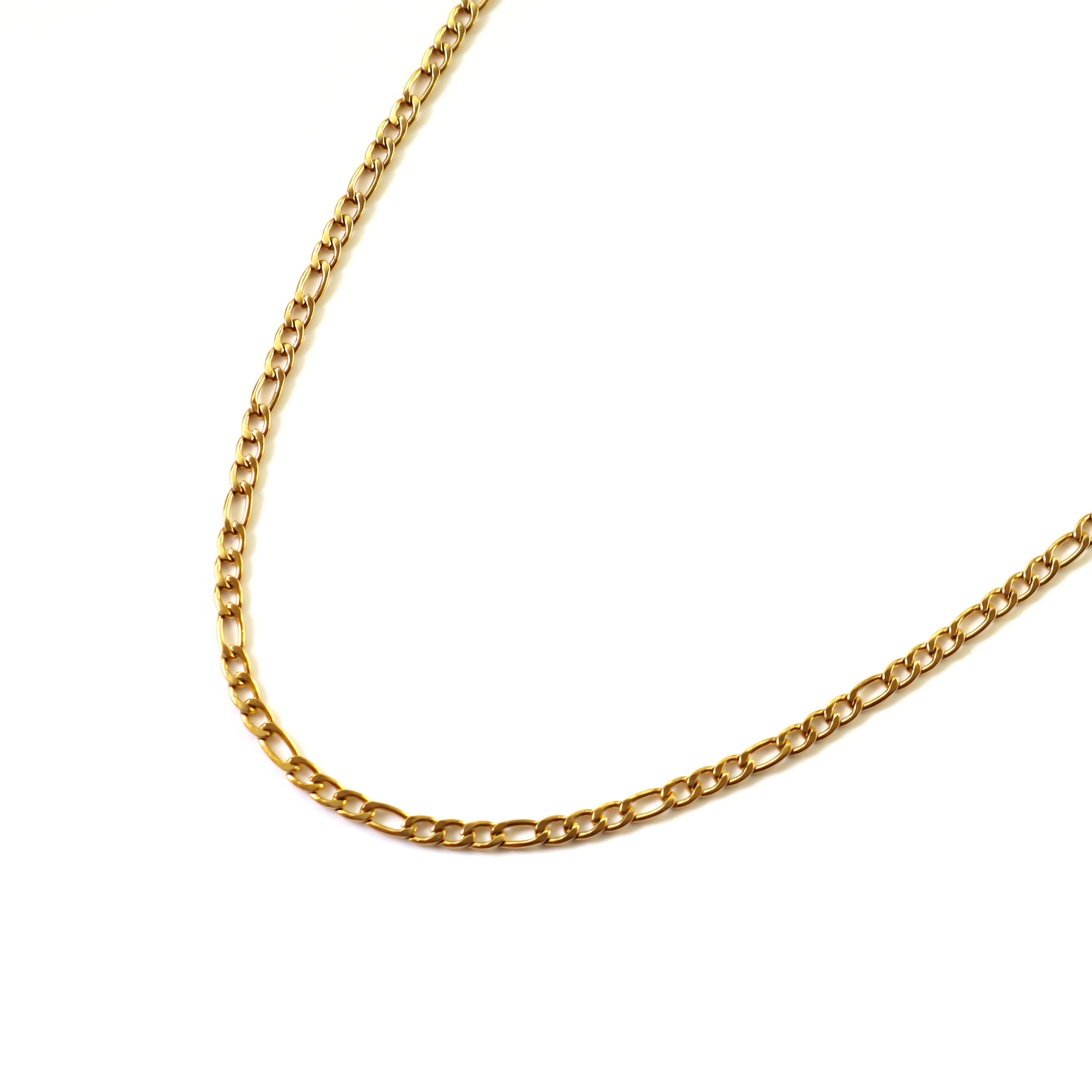 Figaro Chain Necklace / GOLD フィガロ チェーン ネックレス ◾︎商品説明 チェーンネックレスとして定番かつ人気のデザイン。 コマのパターンが特徴的なフィガロチェーンは シンプルながら「こなれ感」を演出し、首元のアクセントとして こだわりを存分に感じさせてくれます。 ◾︎カラー ゴールド ◾︎チェーンサイズ 幅:4.0mm 長さ:45cm・50cm・60cm ◾︎使用貴金属:ステンレス